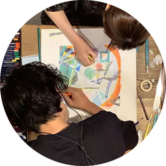 お互いが協力して絵を描く、対話型絵画制作です。